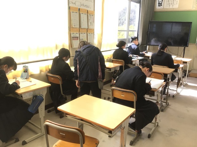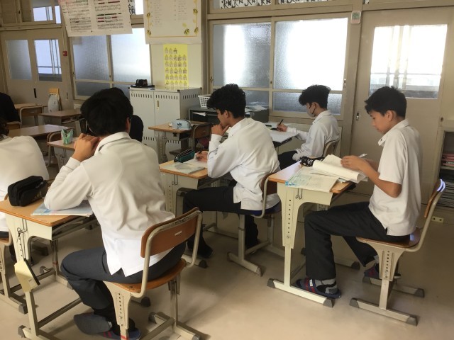 2年生の数学の授業の様子です。学習診断テストの解説を行いました。学習診断テストの問題は、知識だけでは解くことができない問題も出題されています。しっかりと復習して力をつけていきましょう。