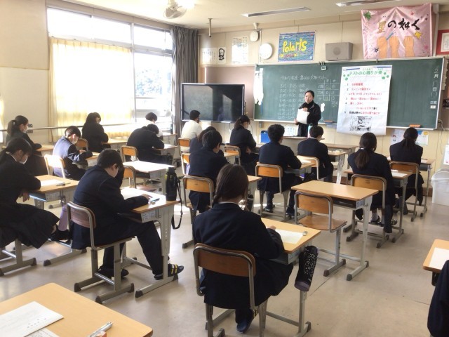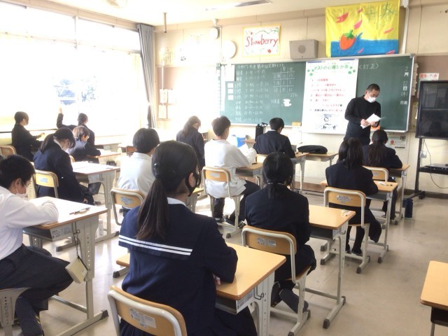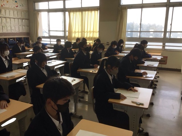 1年生の定期テスト2日目、直前の様子です。