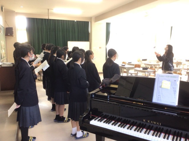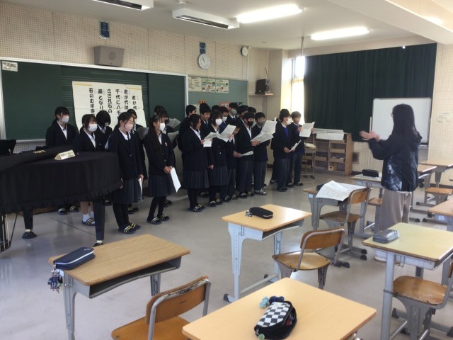 1年生の音楽の授業の様子です。合唱曲「fight」の練習をしています。