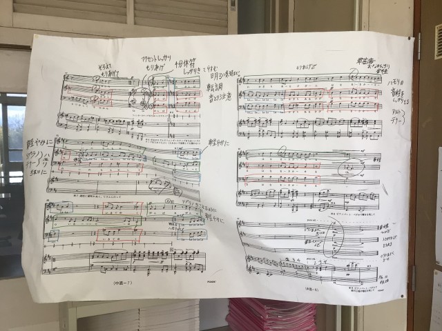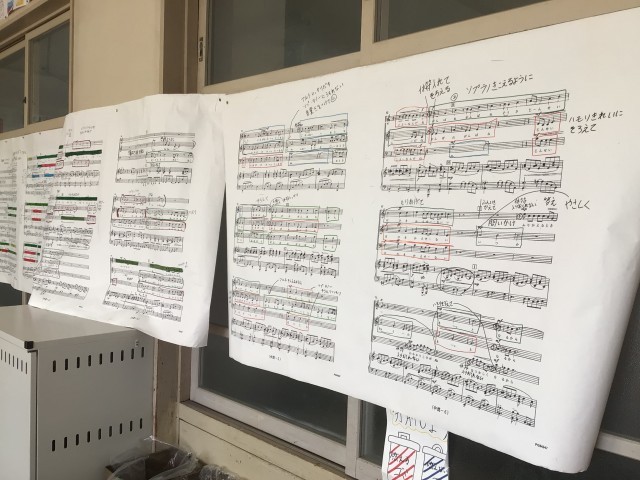 1、2年生は送る会の歌の練習を頑張っています。楽譜に表現するところなど、書き込んで、練習に励んでいます。