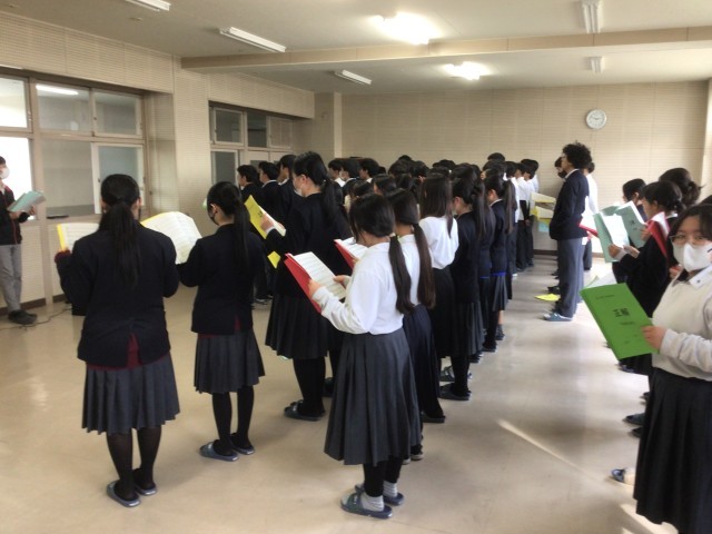 卒業の歌の練習を頑張っています。初めの頃より、とても声がそろってきました。