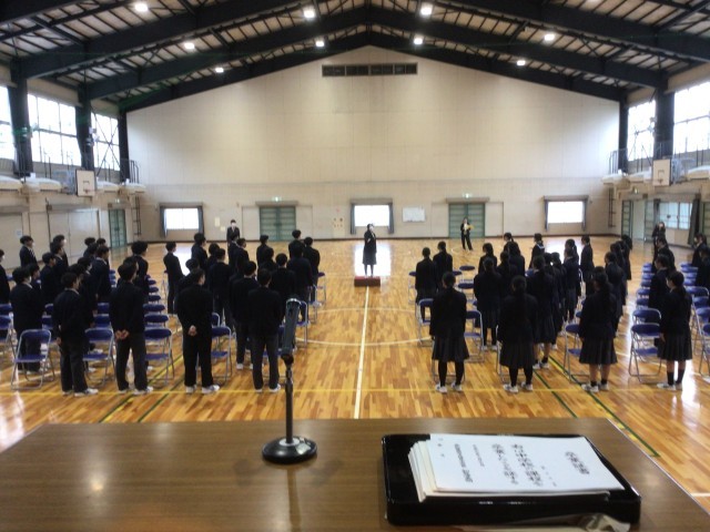 全校練習の後に3年生は残って合唱練習を行いました。広い体育館で、歌声を響かせていきましょう!
