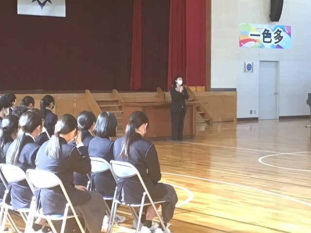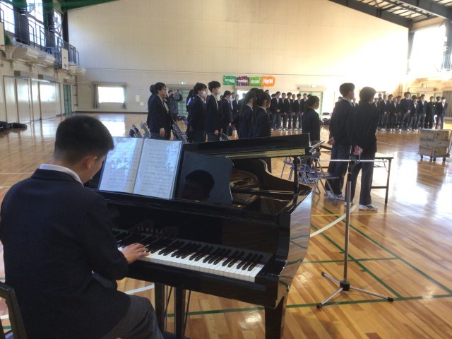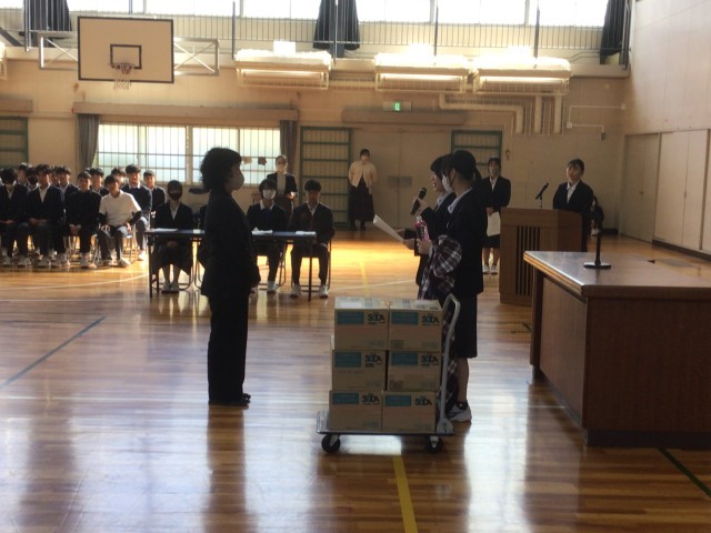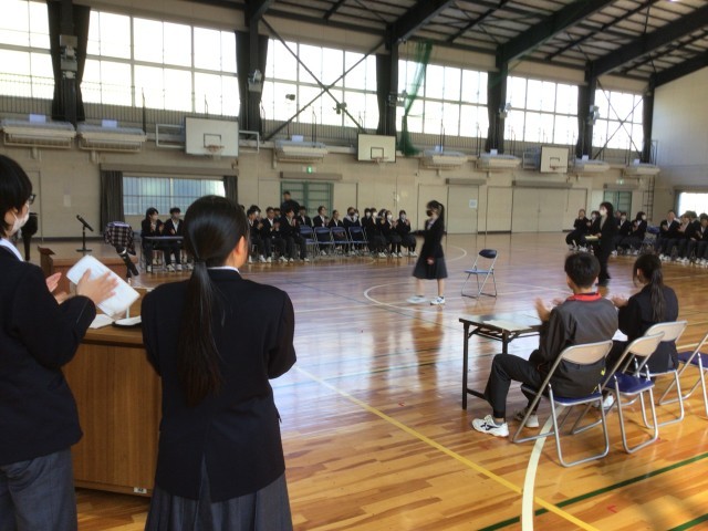 生徒たちが企画して、ひと足お先に学年主任の先生とのお別れ会(卒業式)を行いました。生徒代表の言葉や記念品の贈呈、手作りの卒業証書を渡して、合唱をプレゼントしました。