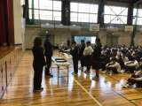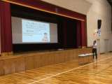 生徒指導主事の先生からのお話を聞きました。自転車の罰則が変わる話など、交通安全の...