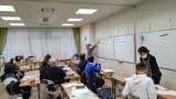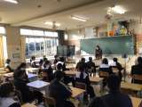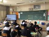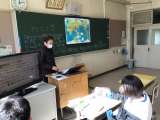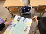 日本語教室の生徒は、少人数で社会科の学習をしています。視覚資料や電子黒板を活用し...