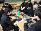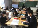 家庭科では店舗やインターネットでの購入の長所や短所についてグループで話し合ってい...