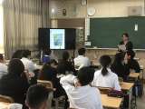 9月に行われた海外派遣事業に参加した生徒の報告を聞きました。