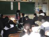 国語では書き初め練習を行っています。書写ボランティアの方からアドバイスを受けてい...
