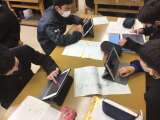 社会科では鎌倉幕府が滅亡した理由について資料をもとにグループで話し合っています。