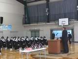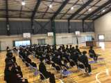 同窓会の入会式です。顕彰生徒の表彰や代表生徒の誓いの言葉、記念品授与を行っていま...
