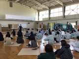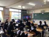 1年生は、体育館で、2、3年生は教室でリモートにて行っています。