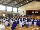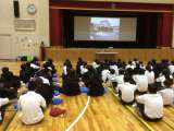 体育館で自転車講習会を行いました。講師さんのお話しを聞いて、安全な自転車の乗り方...