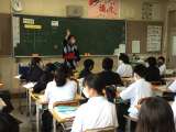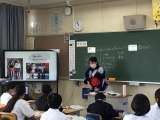 家庭科の授業では、和服と洋服について先生が実際に浴衣を着ています。