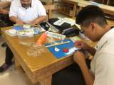 美術では季節からイメージした和菓子を立体化しています。