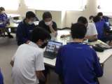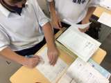 家庭科ではペットボトルケースを作っています。手順書を見たり教え合ったりしながら作...
