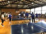 体育では卓球をしています。教師の模範を参考に強い球を打ち込んでいます。