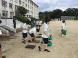 3年生のリーダー会の発案で、体育祭に向けて、自分たちの手でグラウンドの草取りをし...