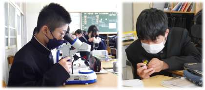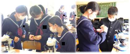 校庭に咲いていた草花の観察するために、双眼実体顕微鏡の使い方を学んでいました。教科担任の説明後、早速観察開始です。