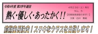 ゴールデンウィークが間近に迫っています。どうやら今年は移動の制限がないようですが、お互い気をつけていきましょう。生徒たちが楽しみにしている体育祭や3年生の修学旅行が行えなくなって、悲しい表情を見ることがないように、我々大人ができることはしっかりやっていきたいです。