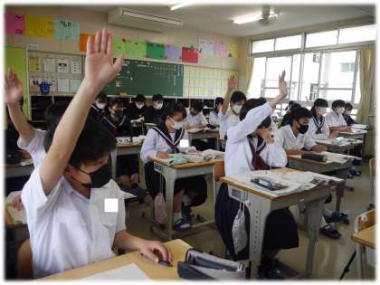 社会科では、教科担任の発問にさっと手が挙がります。反応がよいですね。