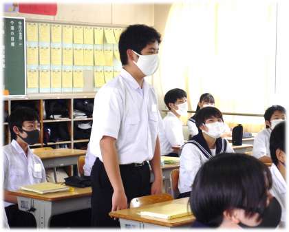 時間にして、7分程度の限られた『とき』。しかし、自分の考えを伝えよう、仲間の考えを聴きたいという思い、そして自分たちで思考する楽しさを感じている生徒たちの表情が見られました。