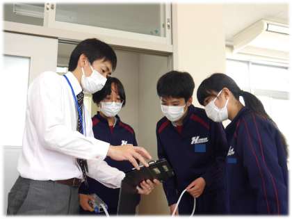 自分たちで実際に実験を行ってみることに加えて、こうした学習用タブレットの機能を活用して、さらに考察に生かしていこうとしています。