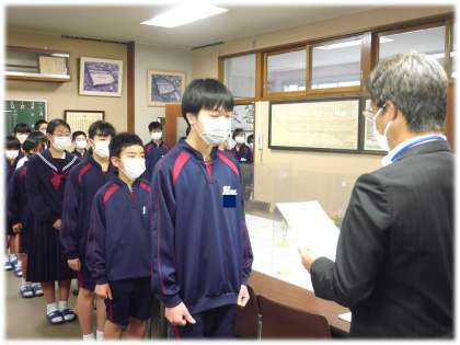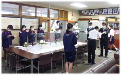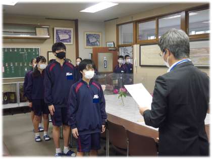 初めてということもあり、校長室には緊張した面持ちの1年生。その中でも、精一杯の返事で応える姿も見られ、「すてきな返事だね」と校長から声をかけられる生徒もいました。