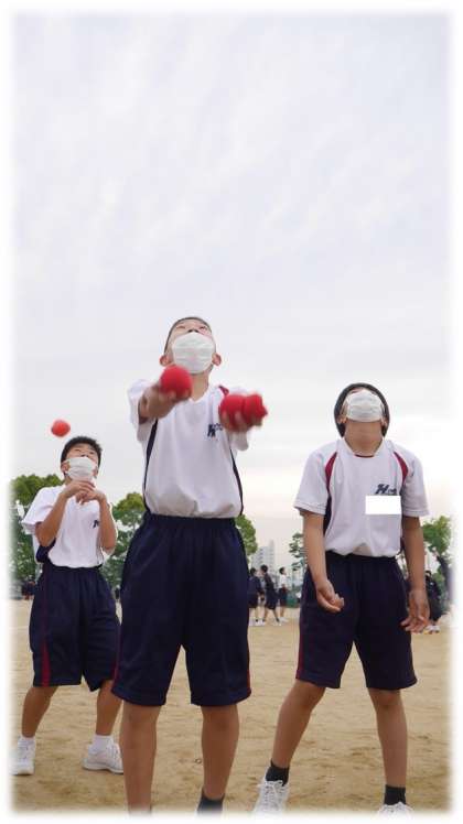1年生の練習風景です。今日のHT(豊南タイム)では、最初に玉入れの練習から行いました。