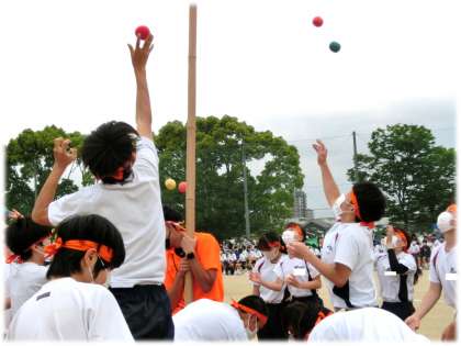 玉の数を数える場面では、まさに校庭で一体感が生まれていました。