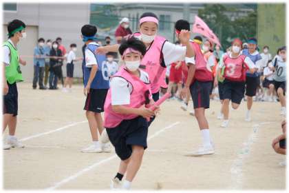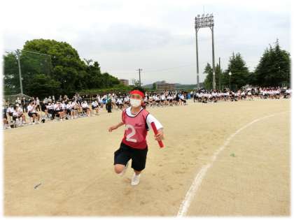 最初は1年生の登場です。学級の、仲間の想いをバトンにのせてつなぎます。