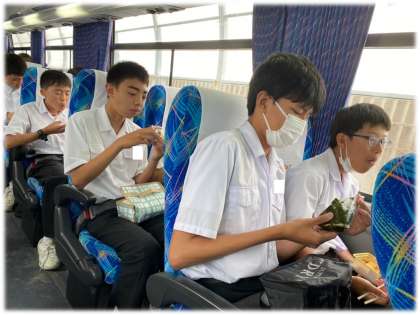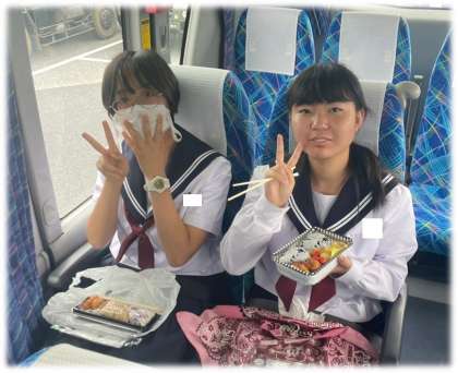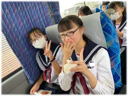 バスの中では、お家の方に準備していただいたお弁当をもぐもぐ!