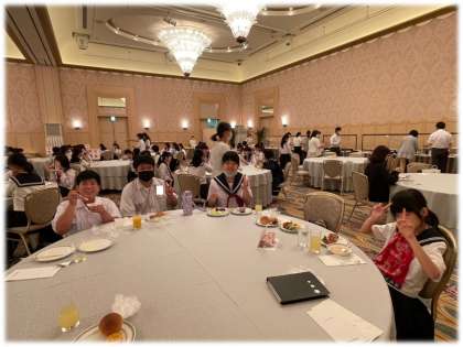 なんと、ホテル内で結婚式があるようです。生徒たちは、すてきな門出を心で祝い、みなさんの迷惑にならないように、静かにホテル内を移動します。