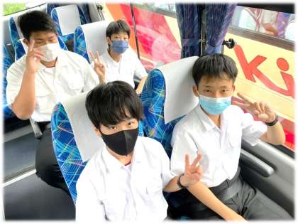 バスは、それぞれの学級別活動場所へ向けて
