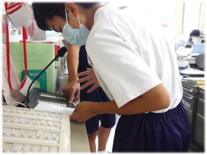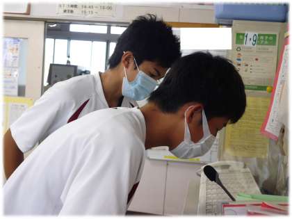 2年生の生徒会役員生徒が朝の放送で呼びかける姿がありました。