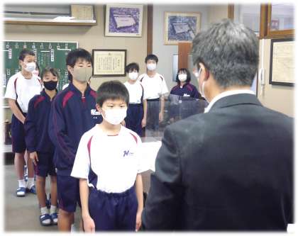 6月15日(水)1年生 5月のクリーンアップ賞・グッドマナー賞の表彰がありました