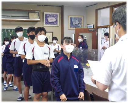 6月16日(木)2年生 5月のクリーンアップ賞・グッドマナー賞の表彰がありました