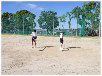 校庭では、野球部の2年生が中心となって、マウンドの整備を自主的に行っていました。今に始まったことではなく、ずっと続けている姿です。