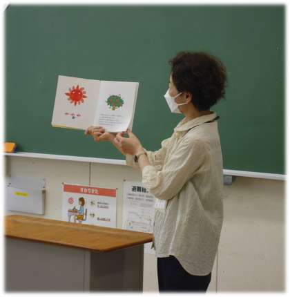 特別支援学級では、毎週木曜日に、ボランティアの方による読み聞かせを行っています。今日は、夏らしい絵本の読み聞かせを楽しみました。
