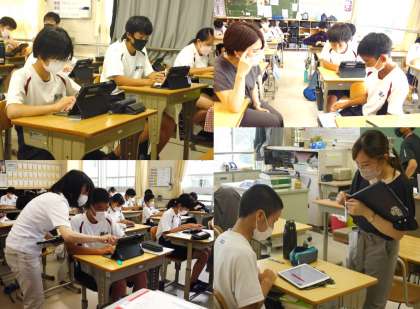 6校時、2年生の全学級(オンライン授業含む)で、新しく7月から導入されたキュビナの説明およびお試しで実際にドリルに取り組む時間を取りました。