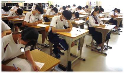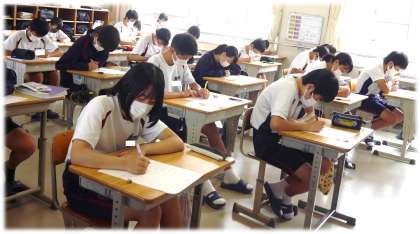 それぞれの教科で、学習診断テスト対策も行っており、生徒たちの鉛筆を動かす音が教室に響いていました。