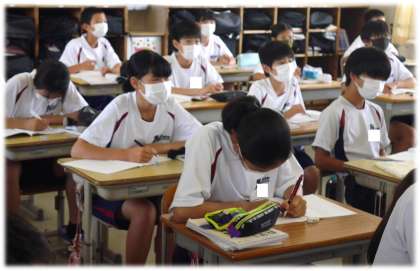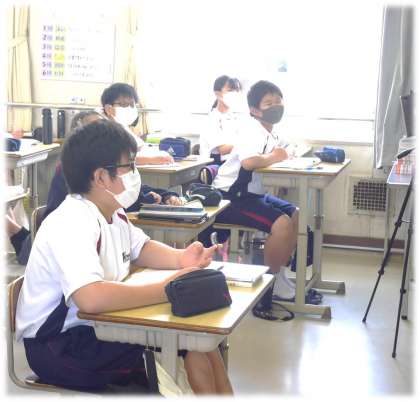 今日も午前中から気温がぐんぐん上がり、大変暑い日になっています。そんな中でも、授業に真剣に臨む1年生です。