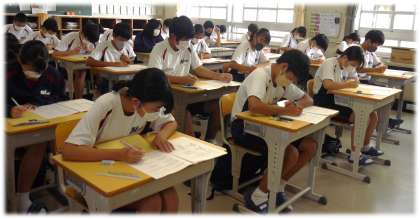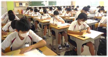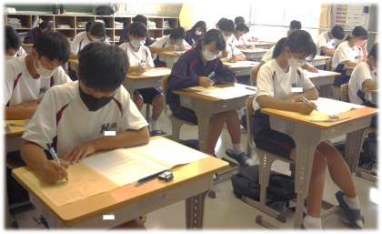 5教科のテストに向かう3年生。その眼差しは真剣そのものです。