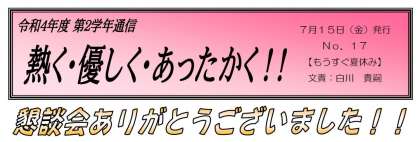 【7月15日発行】2年生 学年通信 第17号