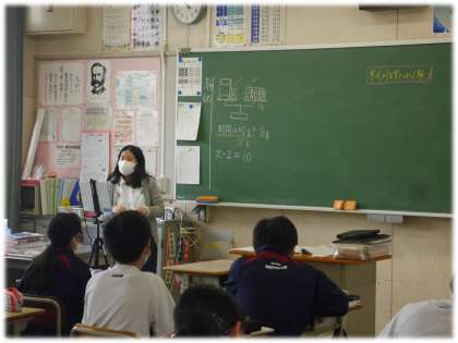 等式の意味を自分の言葉で仲間に説明する場面でした。