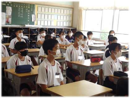 中学生にとって、自転車は生活の中でなくてはならない移動手段となっています。そのため、自転車通学者だけではなく、全員で、夏休みを前にして、今一度自転車の乗り方について考えました。