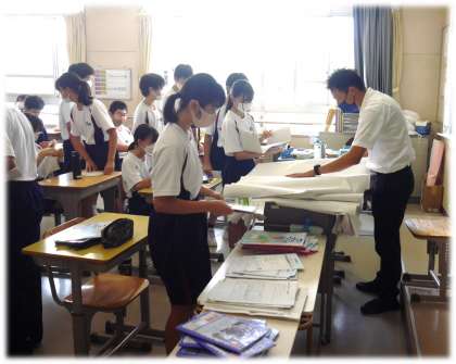 担任からの話を聞いたり、夏休み中に取り組んだ課題を提出したりしました。