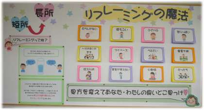 ぜひ、保健室前で、「リフレーミング」にふれてみてくださいね。そして、もしもネガティブなことが起こったら、別の視点から捉える心の余裕をもてるといいですね。
