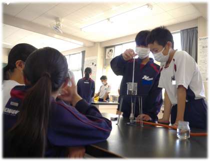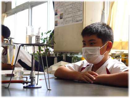 ビーカー内の温度が徐々にあがってくると、いろいろな「変化」が生まれ、その気づきを学級内で確かめ合っています。