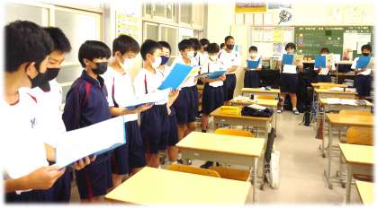 先輩たちに続けと、1年生も合唱曲の練習を自分たちの学級の方法で休み時間に行っています。初めての取り組みで、いつも順調にいくとは限りませんが、自分たちの目標に向けて、薔薇祭までの一日一日を積み重ねていく姿に期待しています。