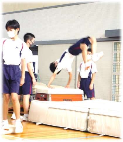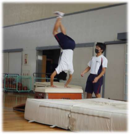 マット・跳び箱の技を磨き合っています。